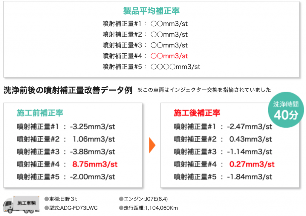 (※走行距離が長い場合はカーボン除去するためのカーボン層脆化処理や浸透処理などが必要) - 洗浄剤の除去・拭上げなど洗浄後処理